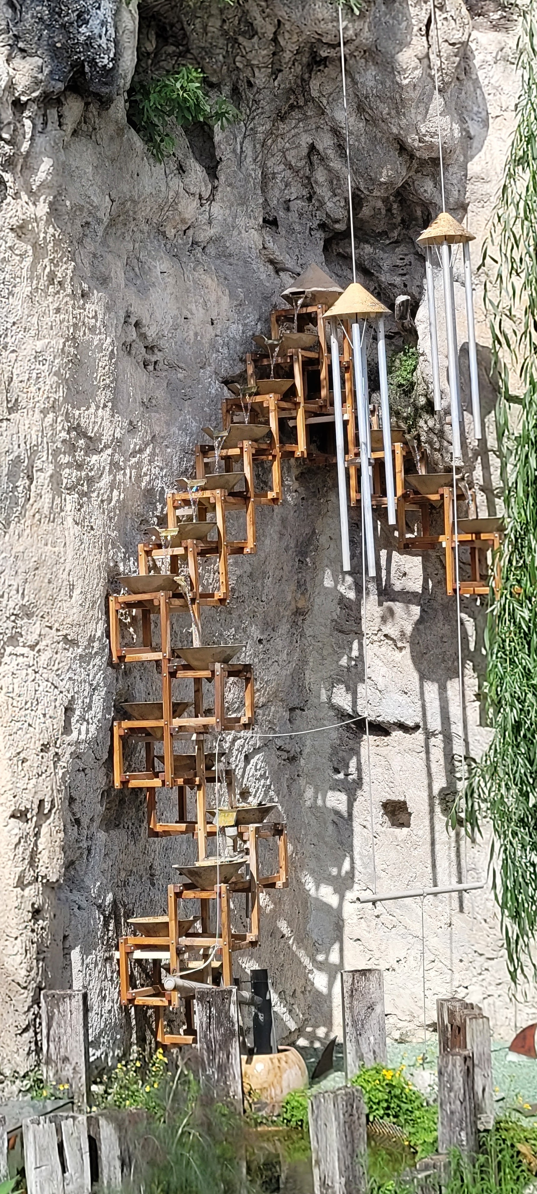 Un lieu de quiétude, de magie vraiment unique. Des carillons qui fonctionnent grâce à l'eau, une décoration féerique, les éléments se mêlent autour de l'eau. Des fleurs à foison, des chaises pour s'asseoir et profiter du lieu. Seul bémol la personne brune à l'accueil pas franchement chaleureuse....