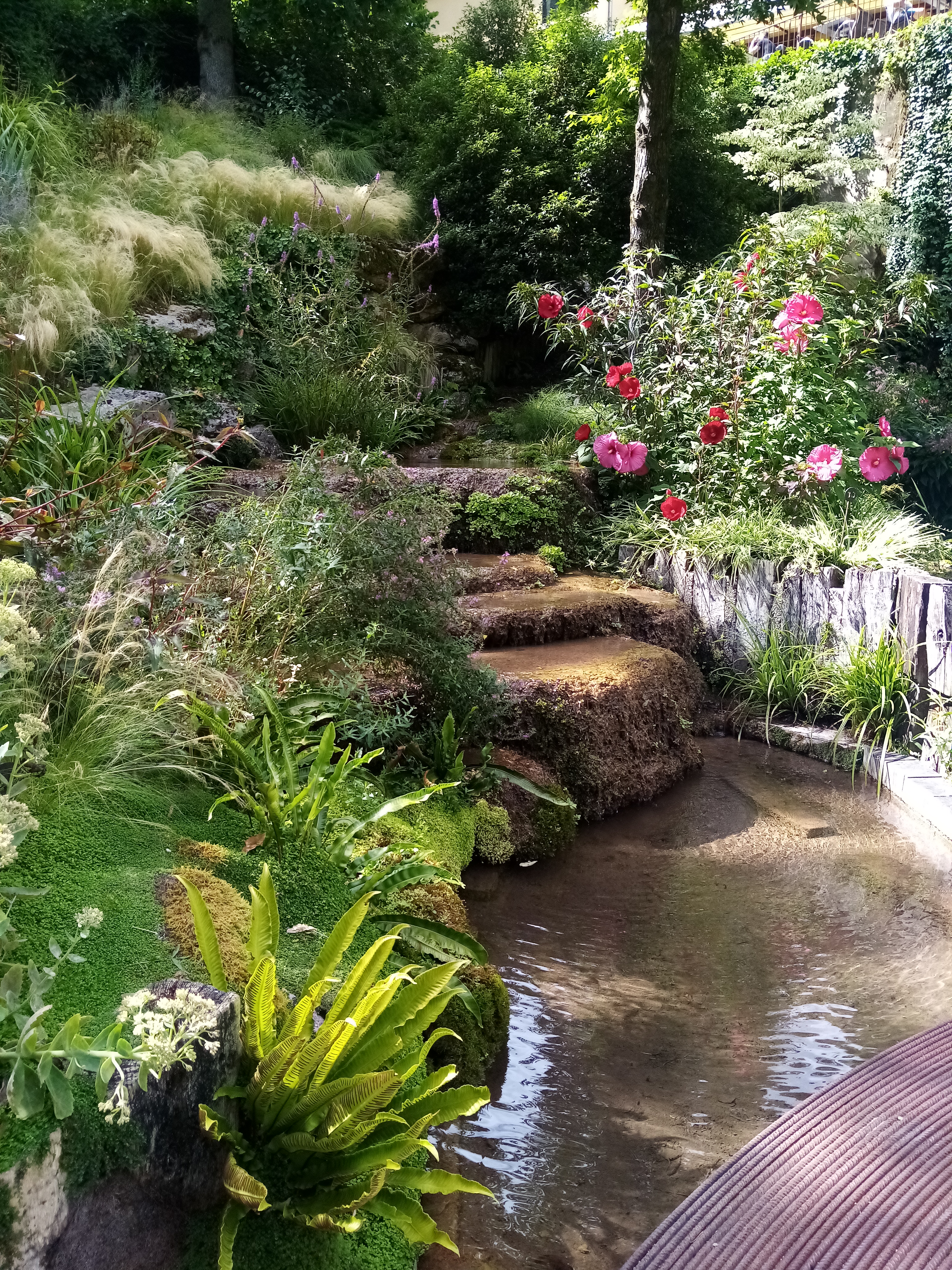 Posté le 22/08/2021 à 15:49"Super beau , mélange de fleurs , d'eau et d'objets comme des parapluies, dame Jeanne etc .Vraiment a voir. Seul hic, la serveuse au bar, aussi aimable et souriante qu'une porte de prison."